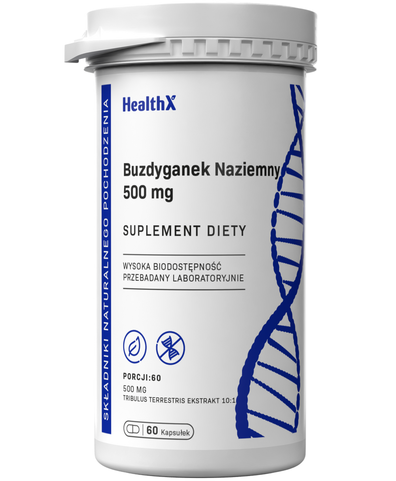 HealthX Buzdyganek Naziemny 10:1 w wygodnych kapsułkach to skoncentrowany ekstrakt z owoców Tribulus terrestris, standaryzowany na zawartość min. 45% saponin steroidowych (protodioscyna). Kapsułki celulozowe — wygodne dawkowanie bez smaku.