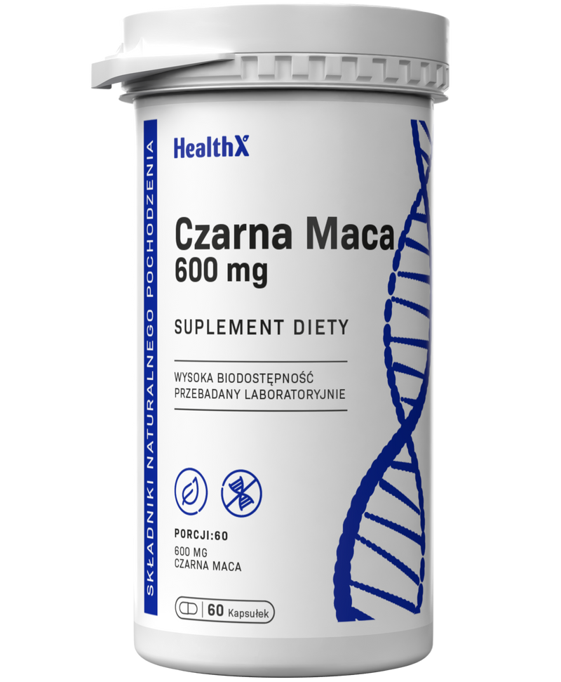 HealthX Czarna Maca w wygodnych kapsułkach to ekstrakt 10:1 z korzenia Lepidium meyenii (czarny ekotyp) — najrzadsza i najbardziej aktywna odmiana maca. Kapsułki HPMC z precyzyjną dawką 500 mg ekstraktu — wygodna suplementacja na co dzień.